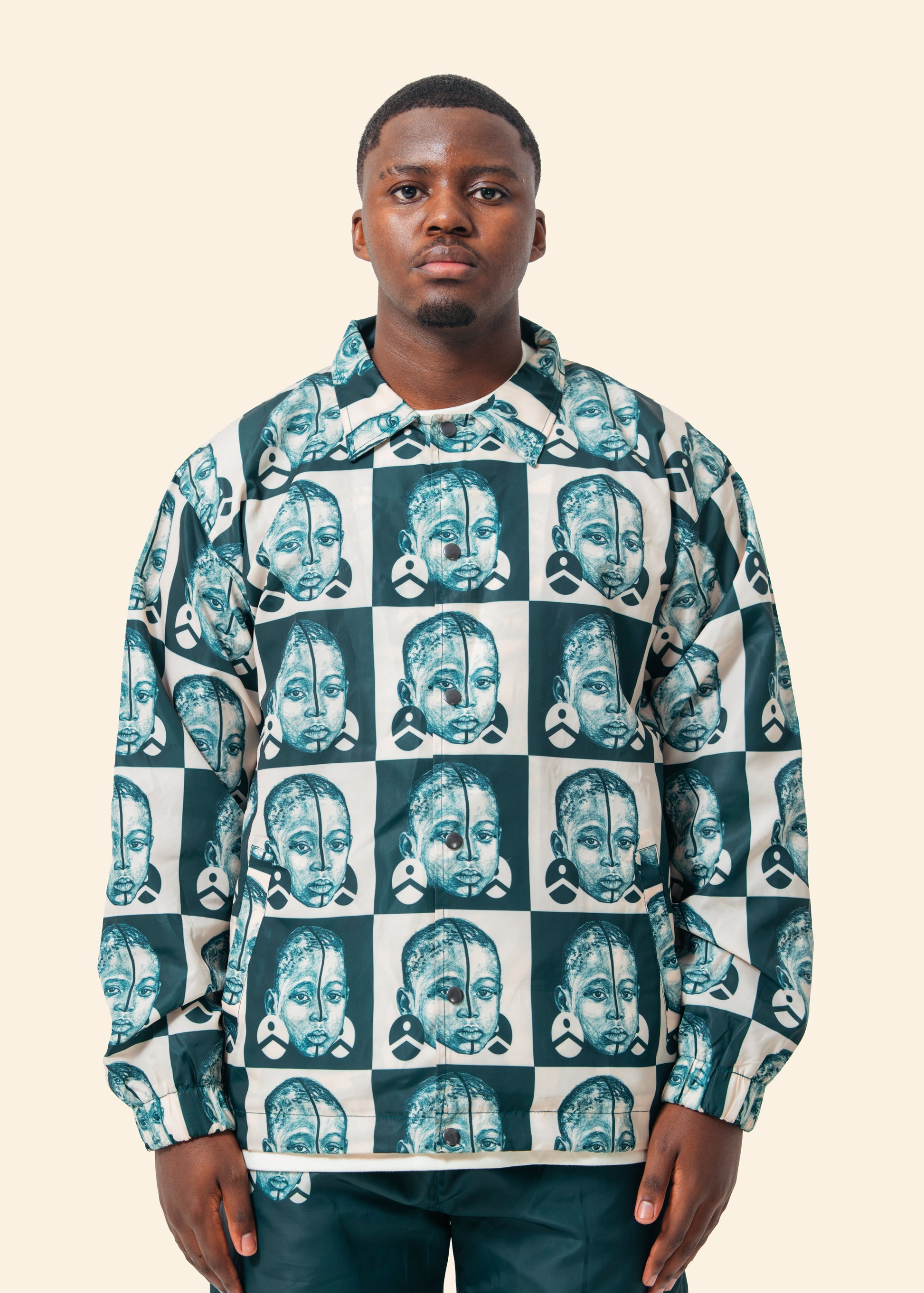 This windbreaker is crafted from 100% nylon, offering lightweight protection against wind and light rain. Featuring a distinctive checkerboard repeat print, it combines style with functionality for versatile outdoor wear. Its durable fabric ensures long-lasting performance while maintaining breathability, making it ideal for active lifestyles and transitional weather.